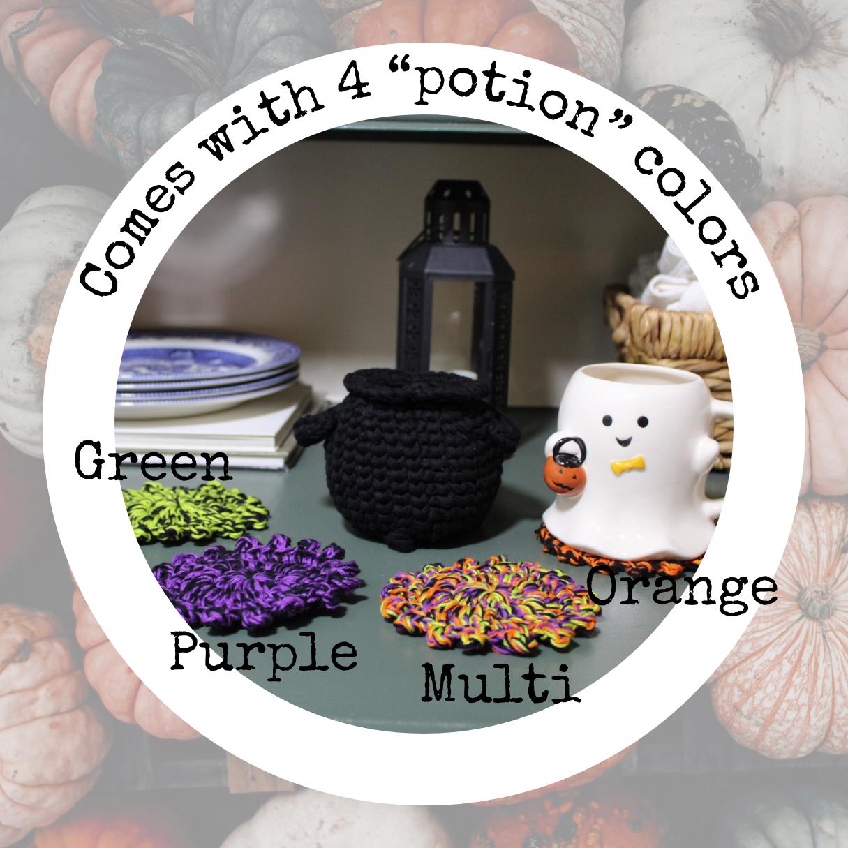 This coaster set is THE coffee table addition you've been waiting for! The coasters work as the "potion" of your cauldron.