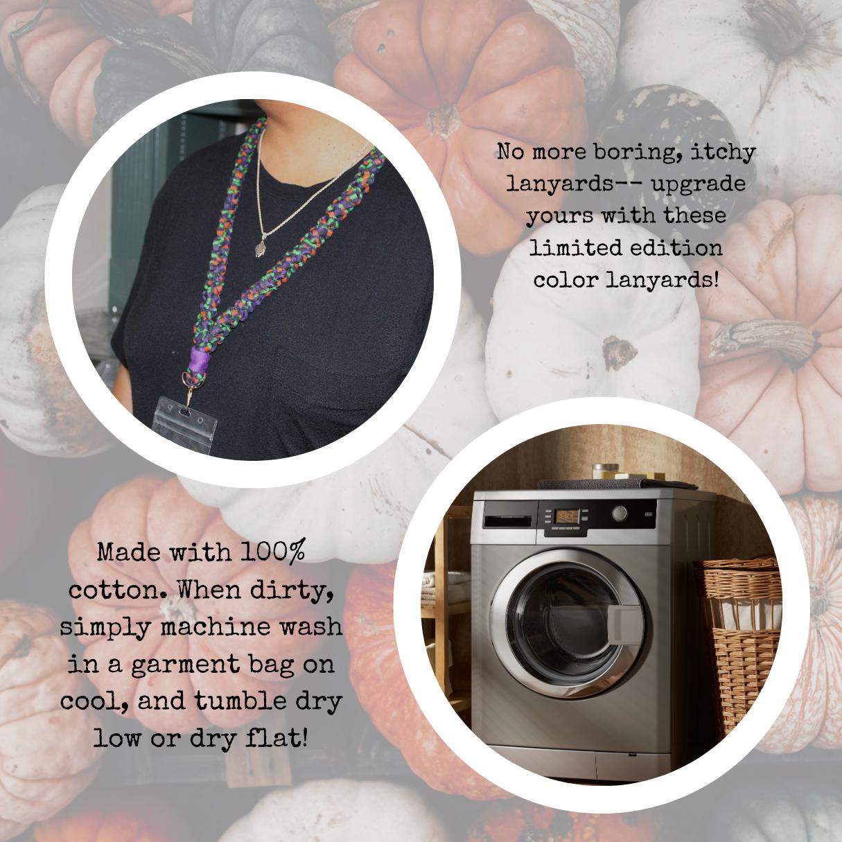 The Fall-o-ween lanyards are here! These lanyards are limited edition colors and bring light to your lanyard! Do away with scratchy lanyards and upgrade to this comfortable cotton, unique, handmade lanyard!