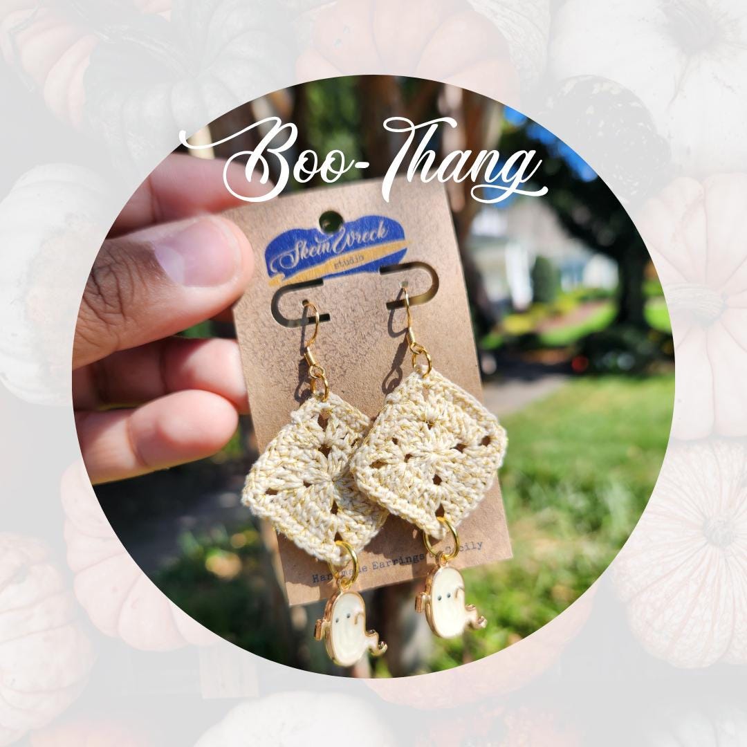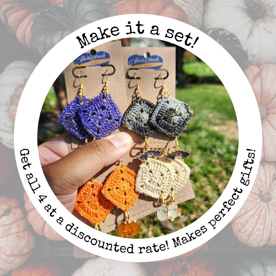 It's Spooky Season here at the studio! Get your Halloween earrings today at SkeinWreck Studio. Each pair ships within 48 hours of ordering, while supplies last!