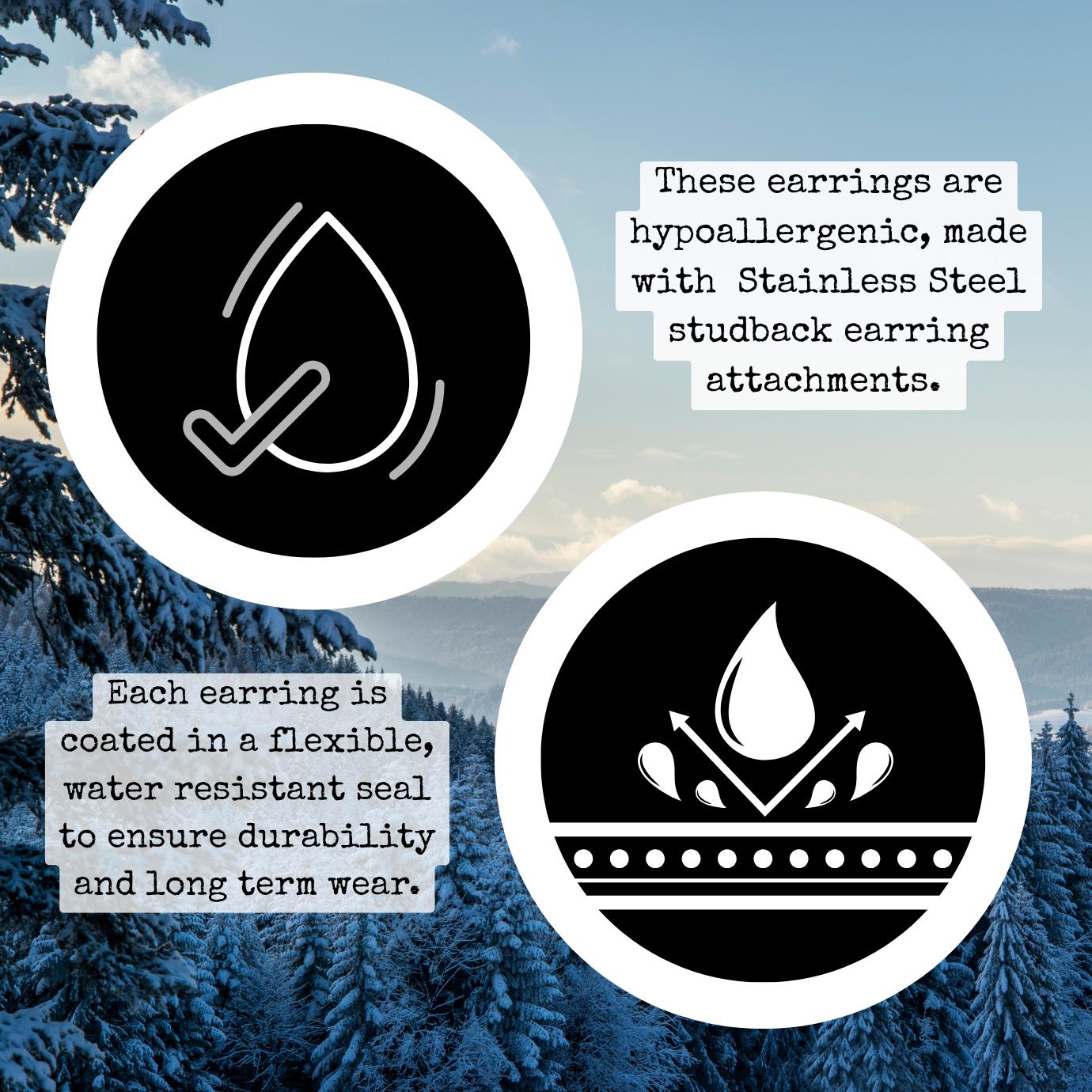 These lightweight snowflake earrings are sure to turn heads and show off your love of winter all season! They are made with 100% cotton thread, and sealed with a lightweight water resistant seal and 100% sterling silver fish hook earrings for a durable, hypoallergenic pair that will last.