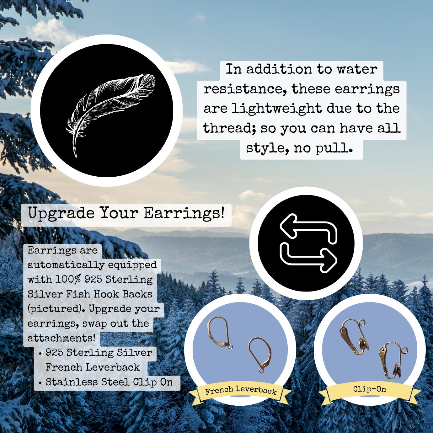 Looking for a different earring back? SkeinWreck Studio now offers 100% Sterling Silver French Leverback Earring attachments and Clip-on attachments so that your stretched lobes, lack of piercing, or pure preference can enjoy these earrings all year!