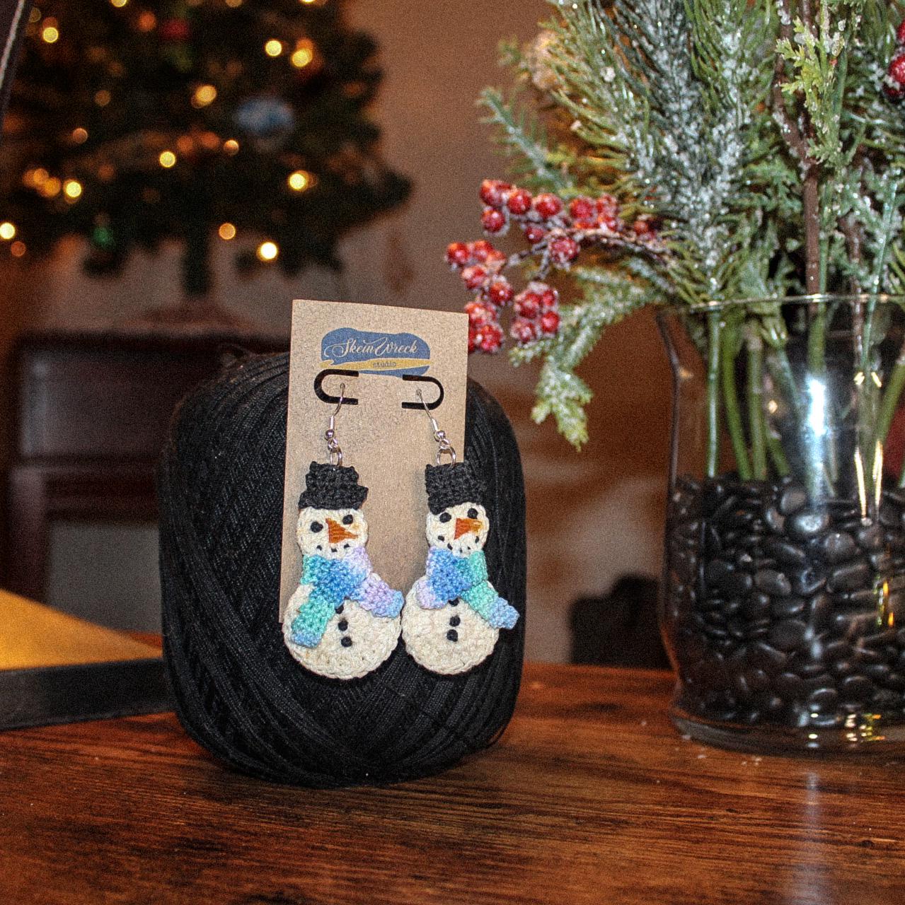The cutest little snowman earrings just dropped! If you love frosty the snowman or all things winter, then these are the perfect statement pieces you're looking for! The crochet thread keeps them lightweight, the stainless steel keeps them hypoallergenic, and the lightweight non-flaking sealant helps ensure long term, durable wear, all year!