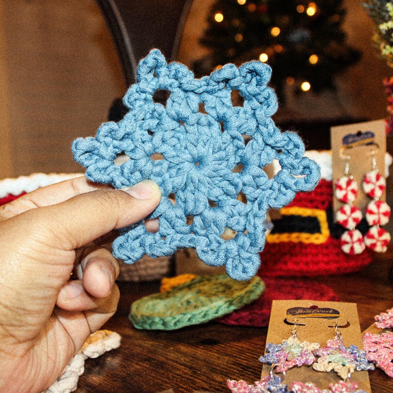 These crochet coasters are one of a kind! These chunky, durable crochet coasters are made of 100% cotton. They are machine washable, and the perfect addition to your winter decor, to protect your surfaces from every mug of tea and cocoa this winter season!